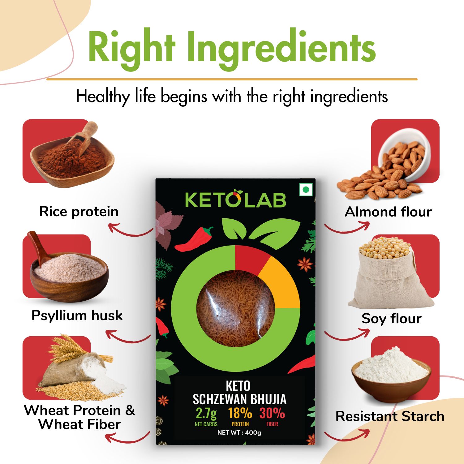 • TASTE IDENTICAL : Ketolab Keto Bhujia (Sezwan) is taste Identical to Regular Bhujia. We work hard to ensure that you can enjoy yourself even on a low-carb lifestyle without compromising on taste.