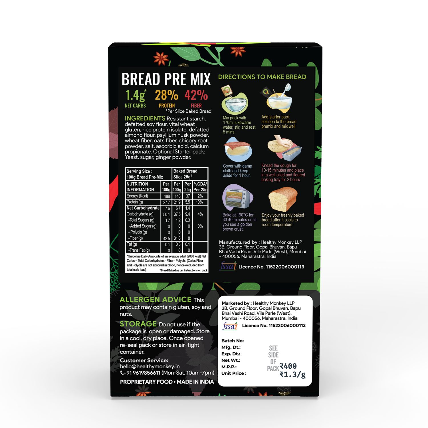 Marketed By: Healthy Monkey LLP. 3B, Gopal Bhuvan, Bapu Bhai Vashi Road, Vile Parle (west), Mumbai – 400056, Maharastra. India. FSSAI : 11522006000113