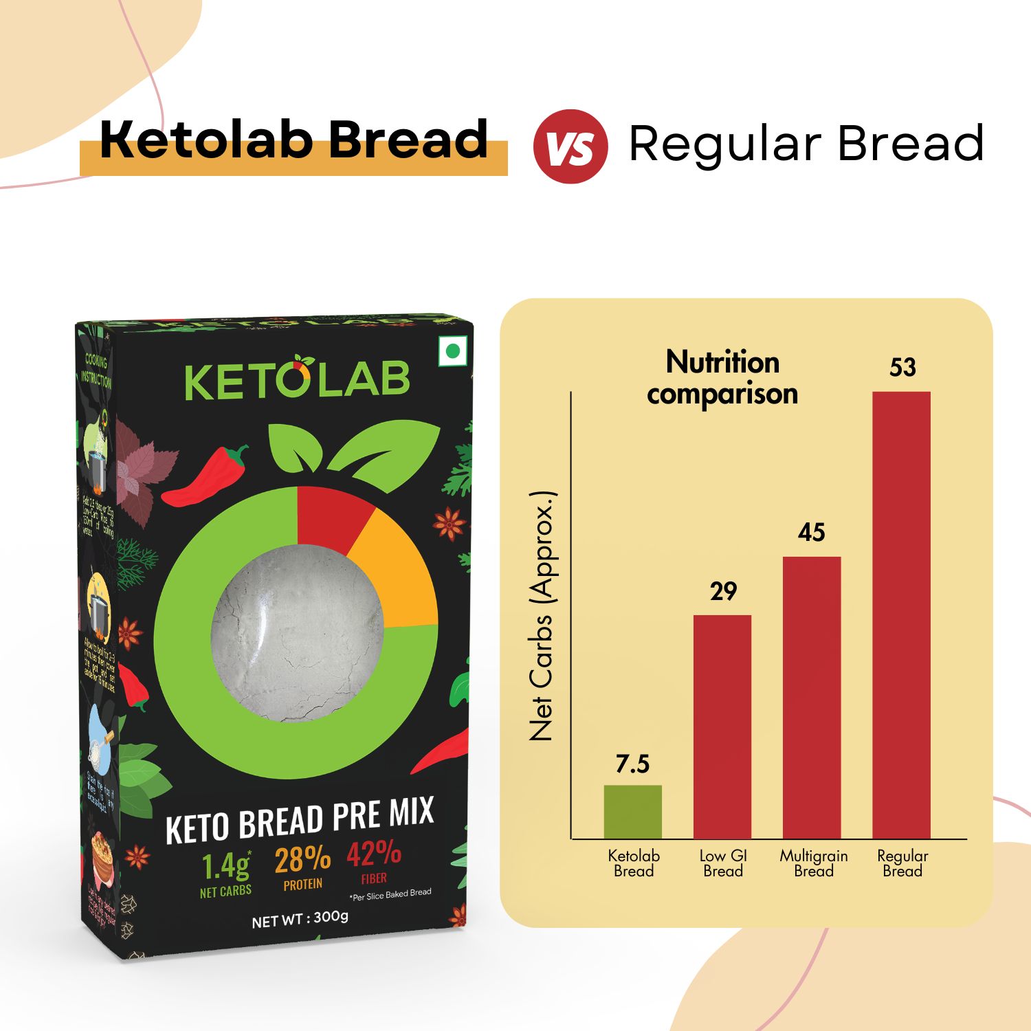 • TASTE IDENTICAL : Ketolab Keto Bread Pre-Mix is taste Identical to Regular Bread. We work hard to ensure that you can enjoy yourself even on a low-carb lifestyle without compromising on taste.
