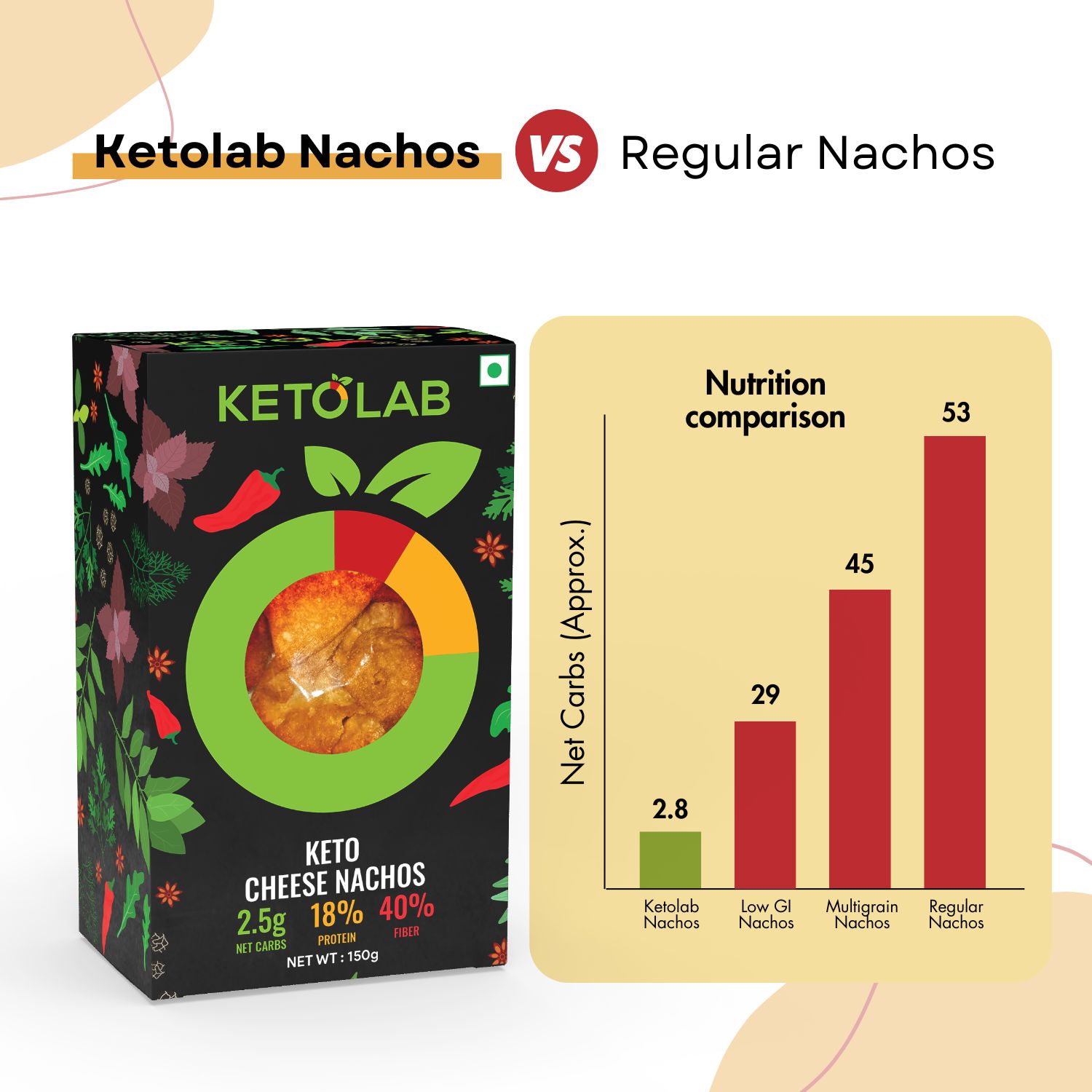 • TASTE IDENTICAL : Ketolab Keto Cheese Nacho Chips is taste Identical to Regular Nacho Chips. We work hard to ensure that you can enjoy yourself even on a low-carb lifestyle without compromising on taste.
