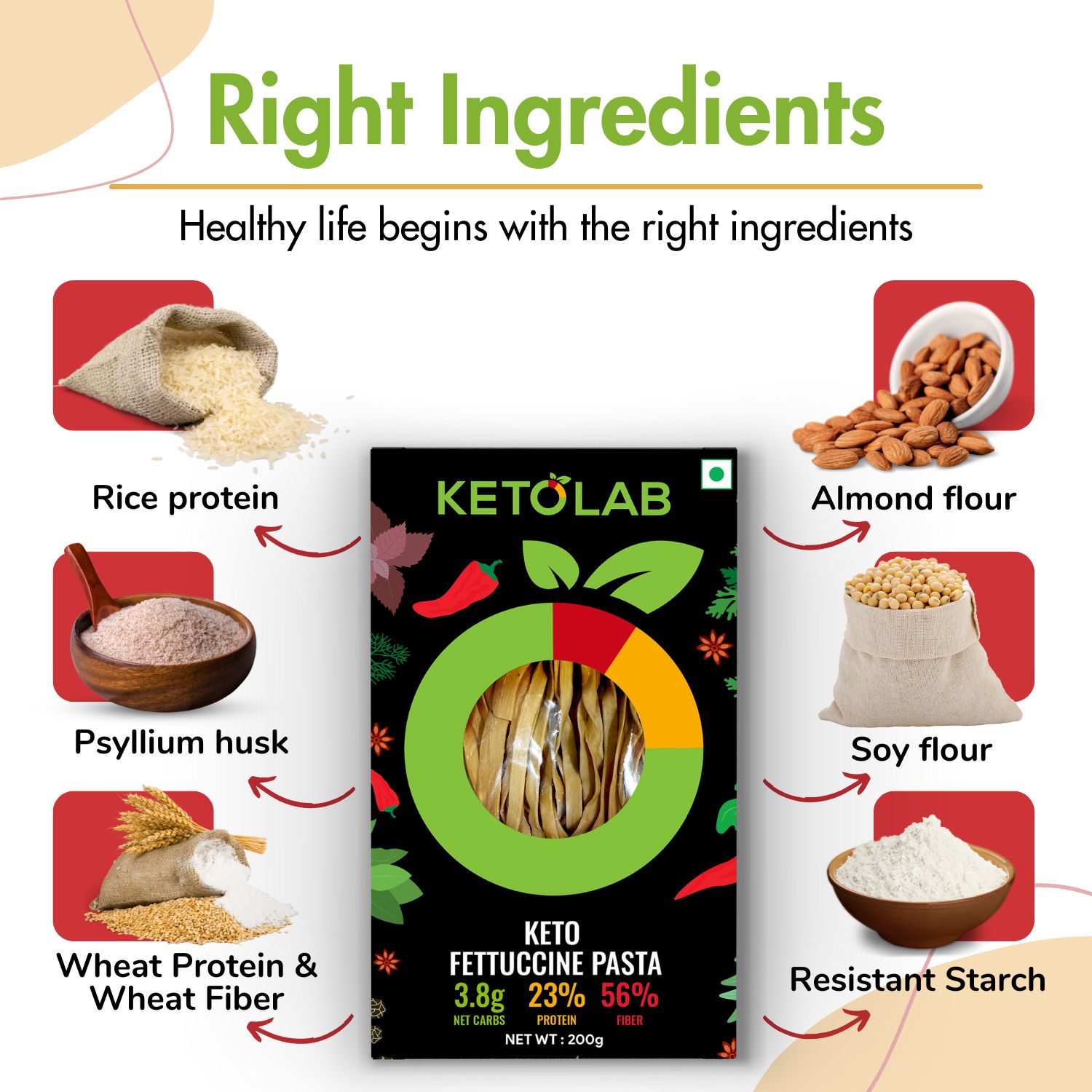 • TASTE IDENTICAL : Ketolab Keto Fettuccine Pasta (Flat noodles) is taste Identical to Regular Pasta. We work hard to ensure that you can enjoy yourself even on a low-carb lifestyle without compromising on taste.