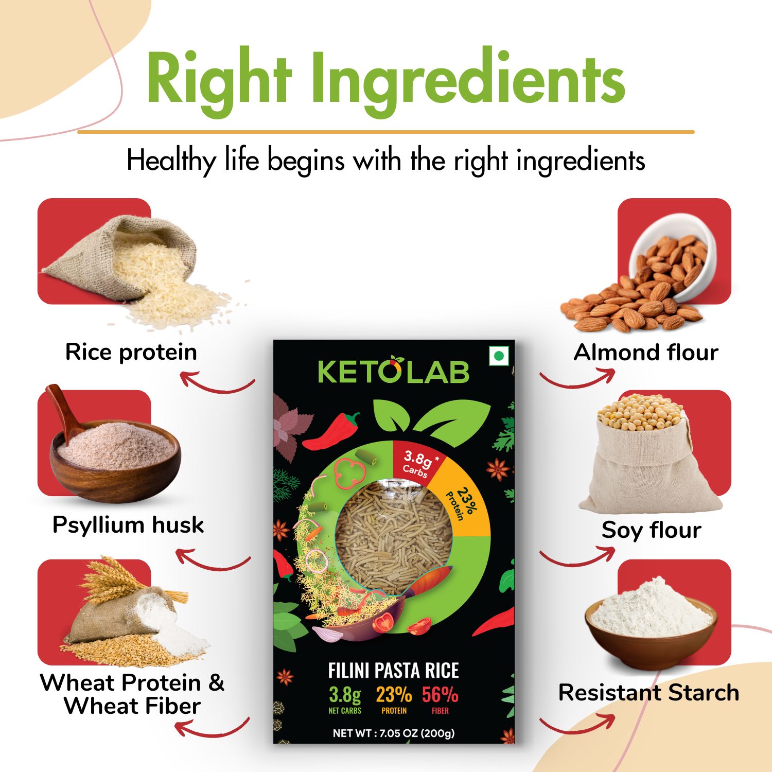 • TASTE IDENTICAL : Ketolab Keto Filini Orzo Rice is taste Identical to Regular Rice. We work hard to ensure that you can enjoy yourself even on a low-carb lifestyle without compromising on taste.