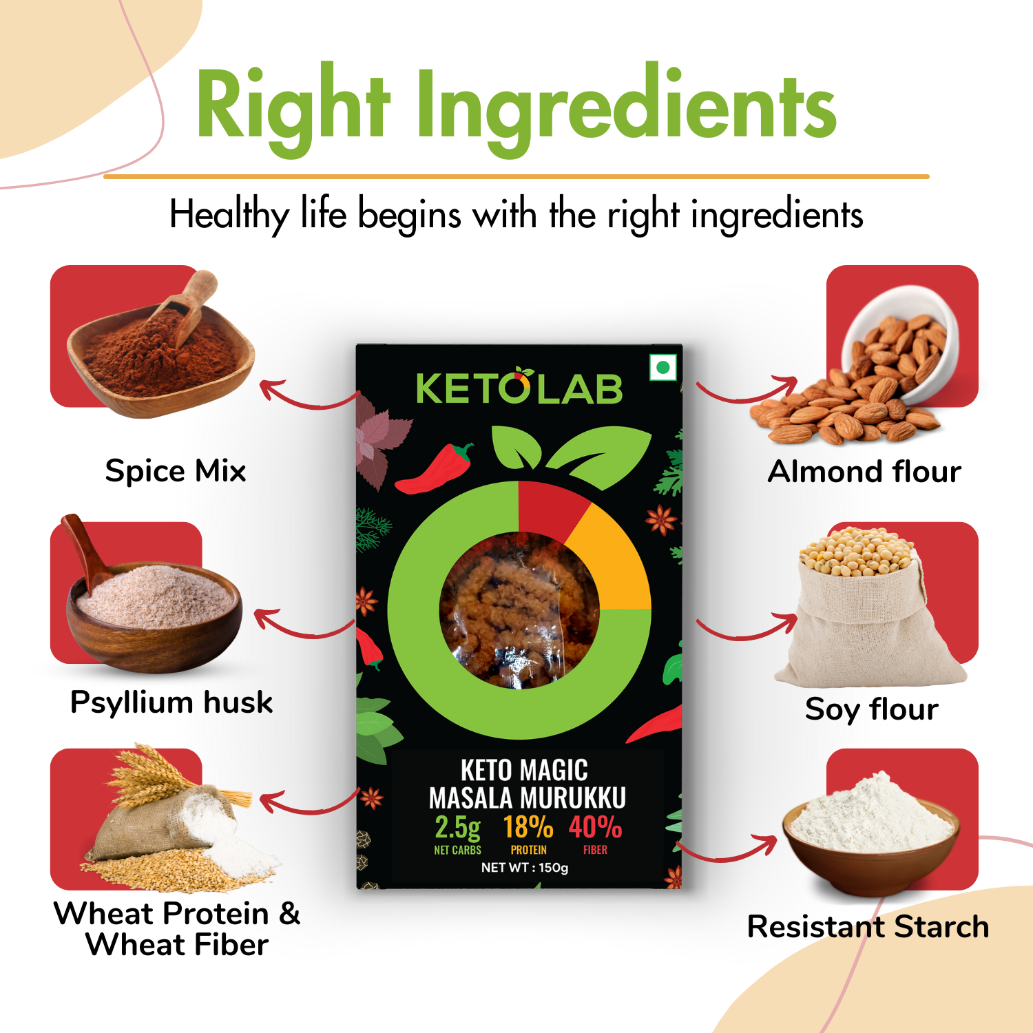 TASTE IDENTICAL : Ketolab Keto Murukku (Magic Masala) is taste Identical to Regular Murukku. We work hard to ensure that you can enjoy yourself even on a low-carb lifestyle without compromising on taste.